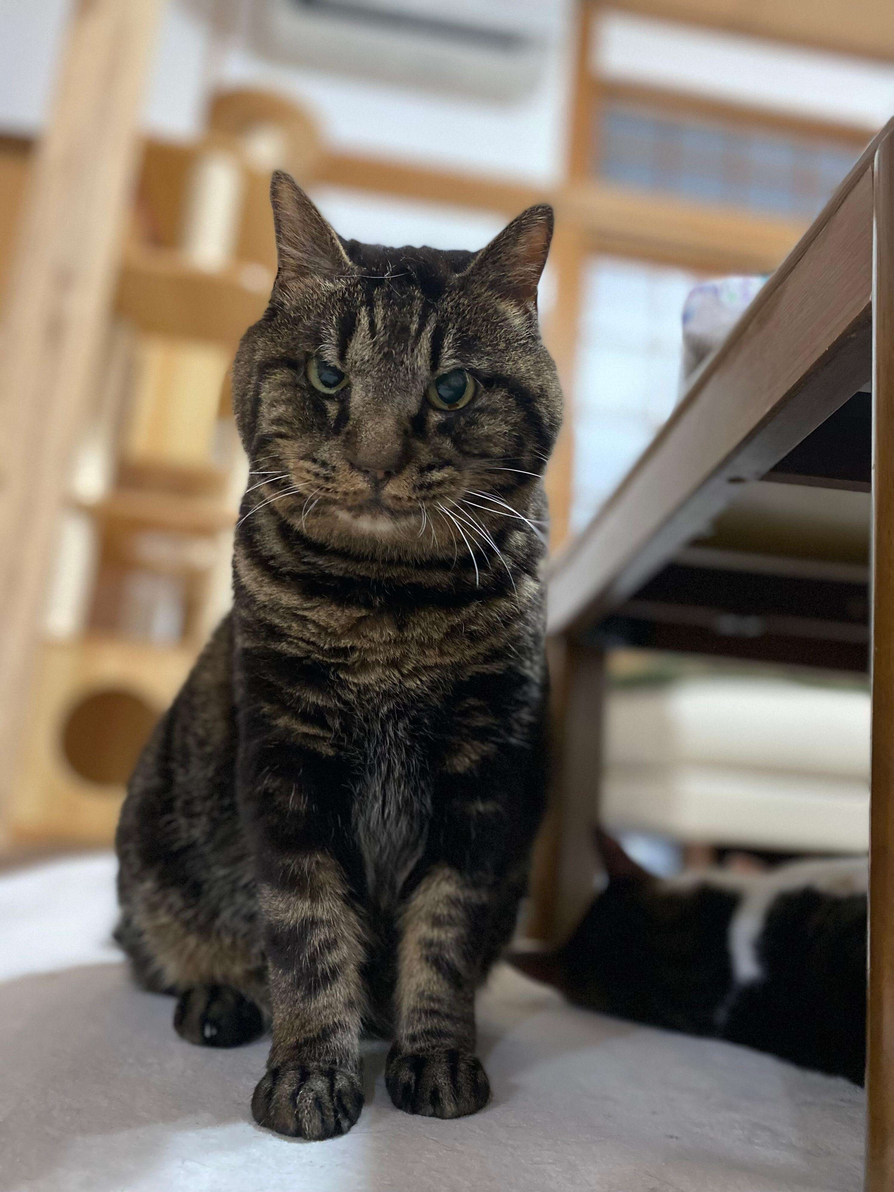 たまちゃんはご飯の2時間前になると定位置にのぼり、鳴いてお知らせしてくれます。