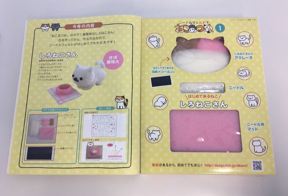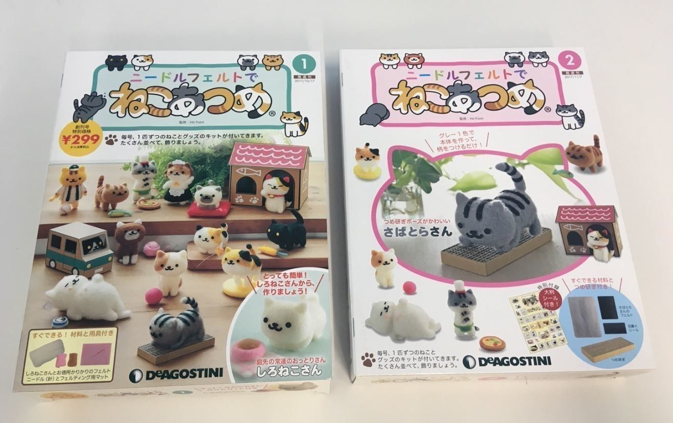 今回はひとり1猫ということで、DeAGOSTINIさんが発刊している「ニードルフェルトでねこあつめ」キット本の1回目と2回目をそれぞれ作ることにしましたー!