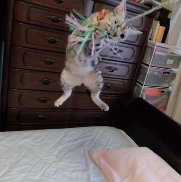 いつもゆったり寝ているイメージが強い猫ですが、じつはすごいジャンプ力の持ち主なのです。