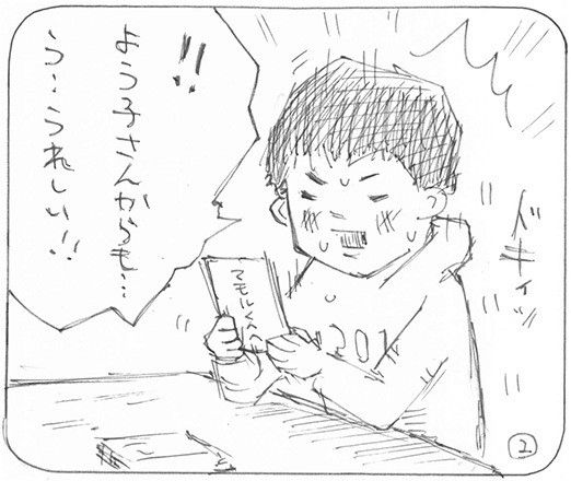 Mamoru: “Look! It’s from Mr. Komatsu. It’s so nice that everybody sends me a card.”