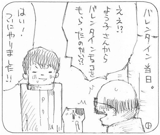 Mr. Komatsu: “What!? You’ve got a Valentine’s chocolate* from Yoko!?”