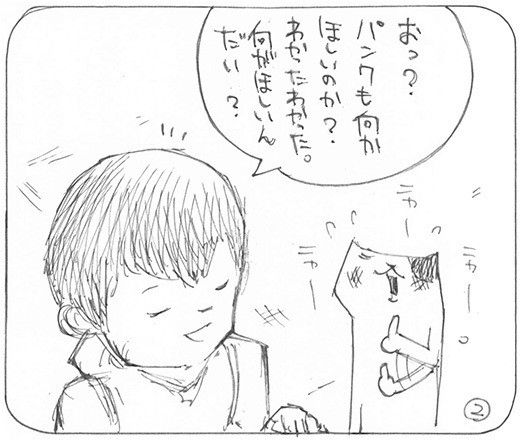 Mamoru: “Huh? You want it, too? OK, OK, Punk. Which one do you want?”
