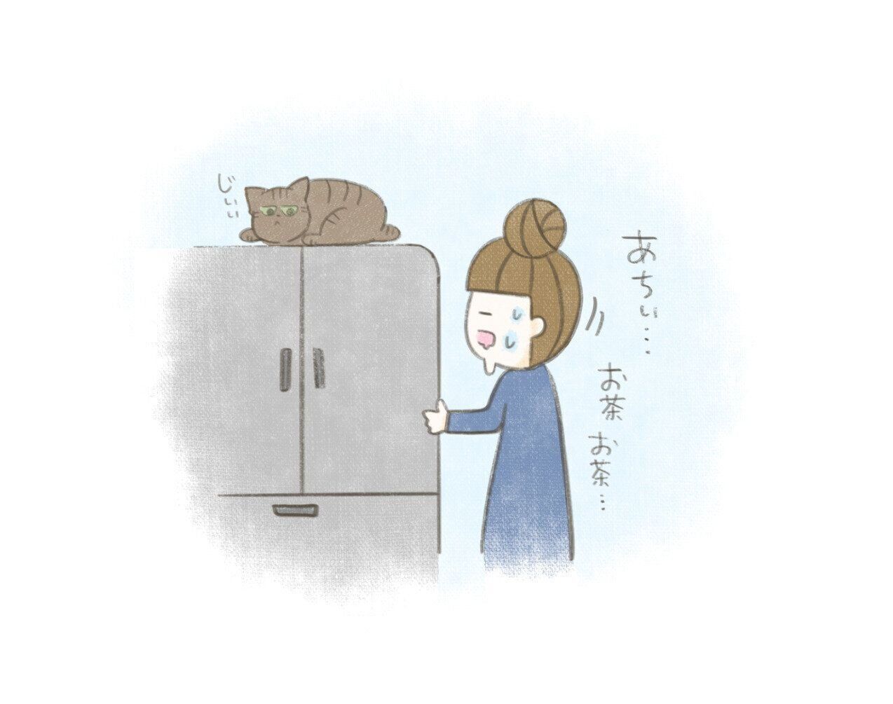 夜中に暑くて目が覚めてしまったおかーさんは、まず先に冷蔵庫へ涼を求めてしまいます。