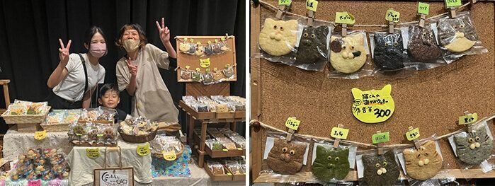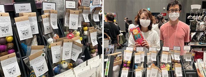 (左)前回に続き出店の「猫組」さん。前回鈴を怖がる猫がいると聞き、音が鳴らないじゃらしを作ったそう。お客さんとのやりとりがとても参考になるのだとか。