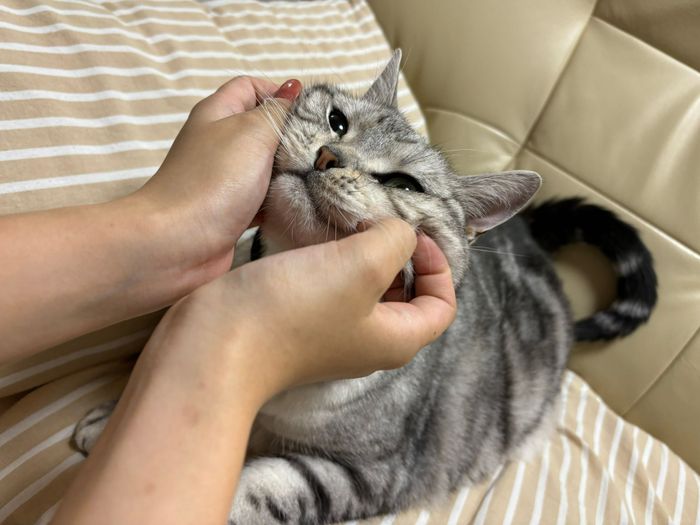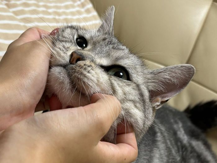 サスケは顔周りをぐりぐりされるのが好きなので、マッサージされている気分なのではないでしょうか。サスケはいつもきゅるきゅるした目で娘を見つめています」