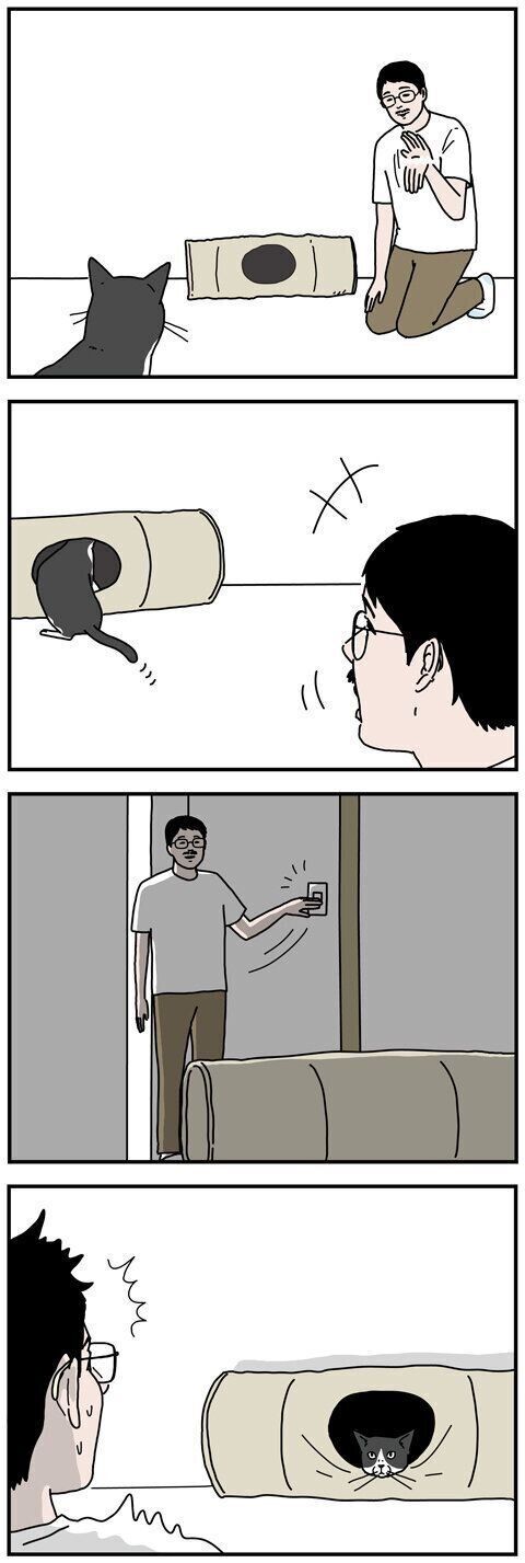 我が家の猫たちもたまに顔だけがキャットタワーから出ていたり、それ体どうなってるの?ねじれてない?と体を触って確認したくなることがよくあります。