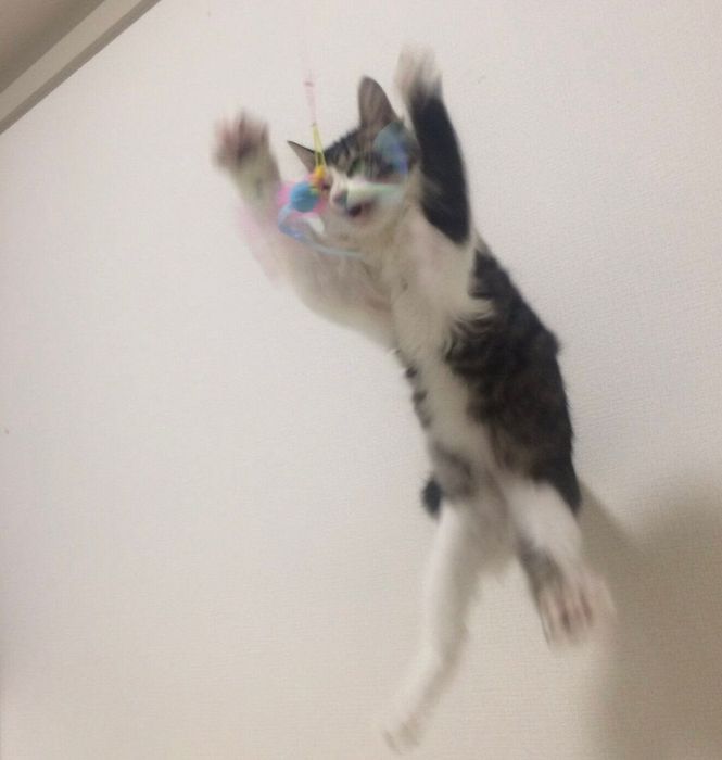 取り付けるとすぐに遊び始めたのですが、だんだんと野生に戻ったかのように、鼻息が荒くものすごい勢いで何度も飛びかかっていました。正直ビックリして笑ってしまいました(笑)」