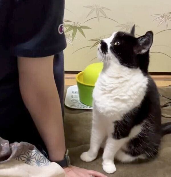 “お尻トントン”される猫、背後に不穏な影? しれっと割り込む「高等テクニック」にクスッ!