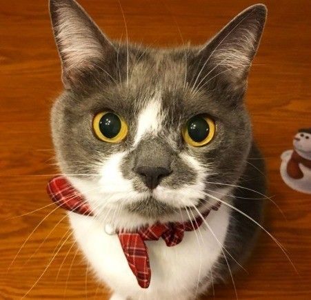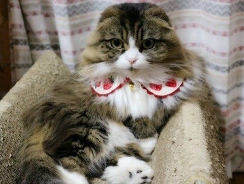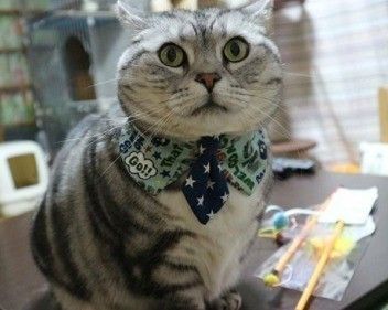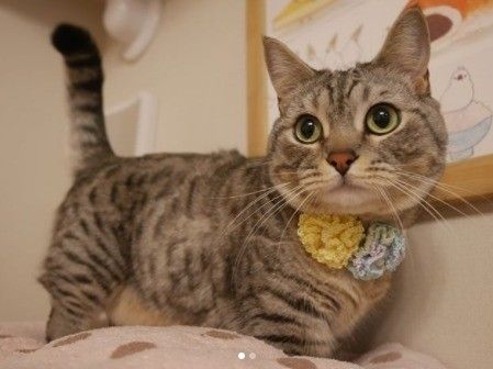 ボリュームのある花デザインなら小顔効果も!パステルな色合いが毛色に合っていて、とても様になっていますね。ちなみに花柄タイを付けている、こちらのニャンコは男の子。柔らかい表情が優しさを感じさせます。
