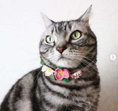 器用な飼い主さんなら、かぎ針編みで素敵なタイを愛猫に編んであげたいですね。春を感じられるキュートな花柄デザインなら、ニャンコも喜んでくれるでしょう。