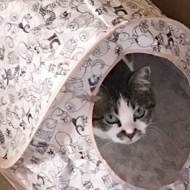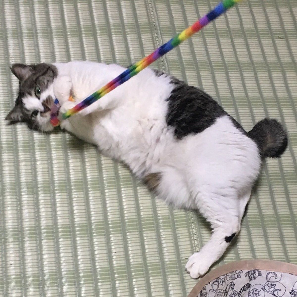 それでもほら、見てください!楽しそうに紐と戯れています♡一緒に遊んでいるうちに、近くに寄ってきてくれるようになり、そして撫でることができるようになったそう。徐々に心を開いてくれているんですね。