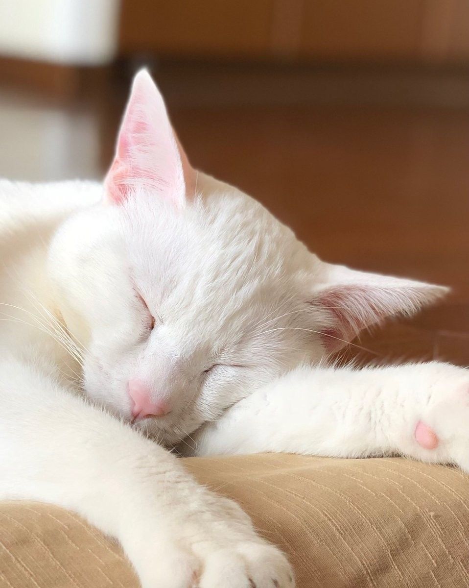 そしてこの可愛らしい寝顔♡安心しているのが伝わってきます。優しい飼い主さんのもとで幸せに過ごしているのがよくわかる、素敵な一枚ですね。
