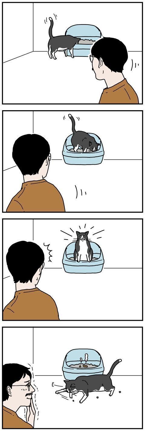 なかでも、うんちをした後、トイレの外に出てから一生懸命を砂をかく仕草を見ると、プッと吹き出してしまいます。