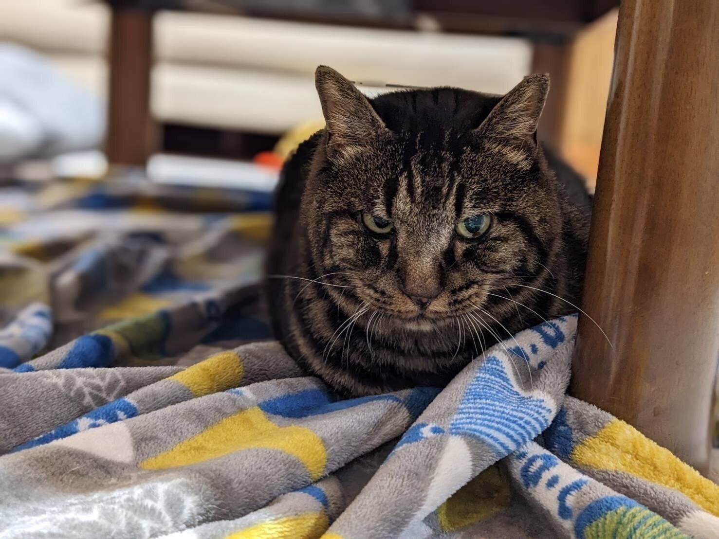 毛布にくるまってくつろぐおかーさん。