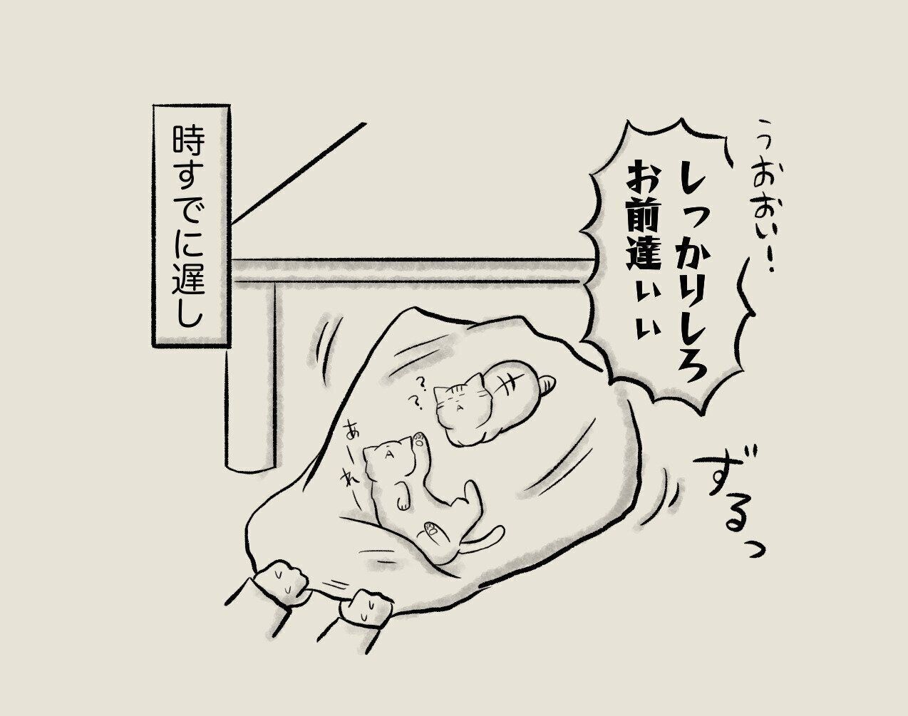 引きずろうが持ち上げようが、心地よい寝床から断固として動かない猫さまたち。