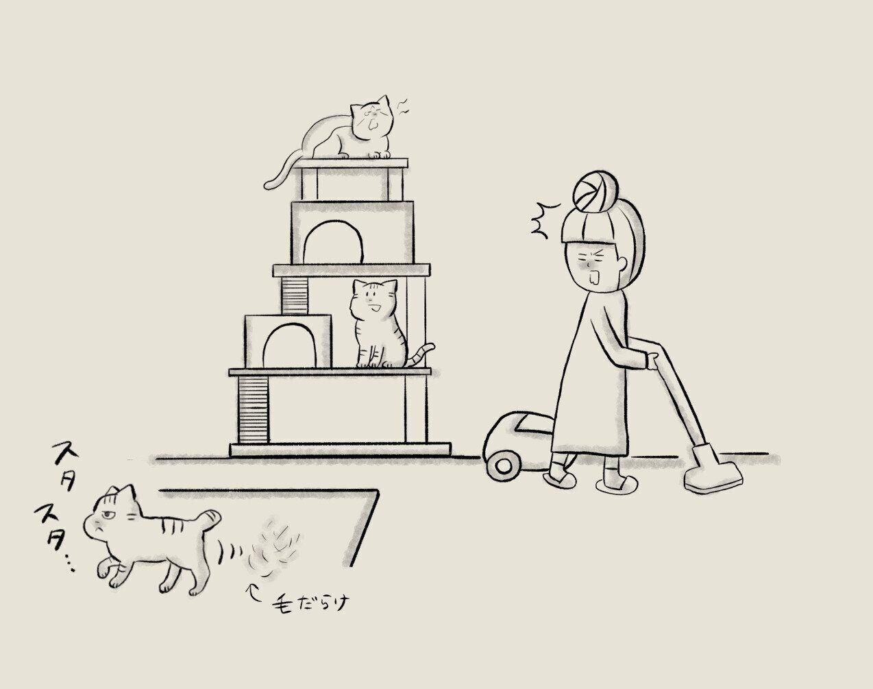 ストレスになると理解はしているのですが、人間にとっても猫にとっても快適な生活なためには掃除はかかせません。