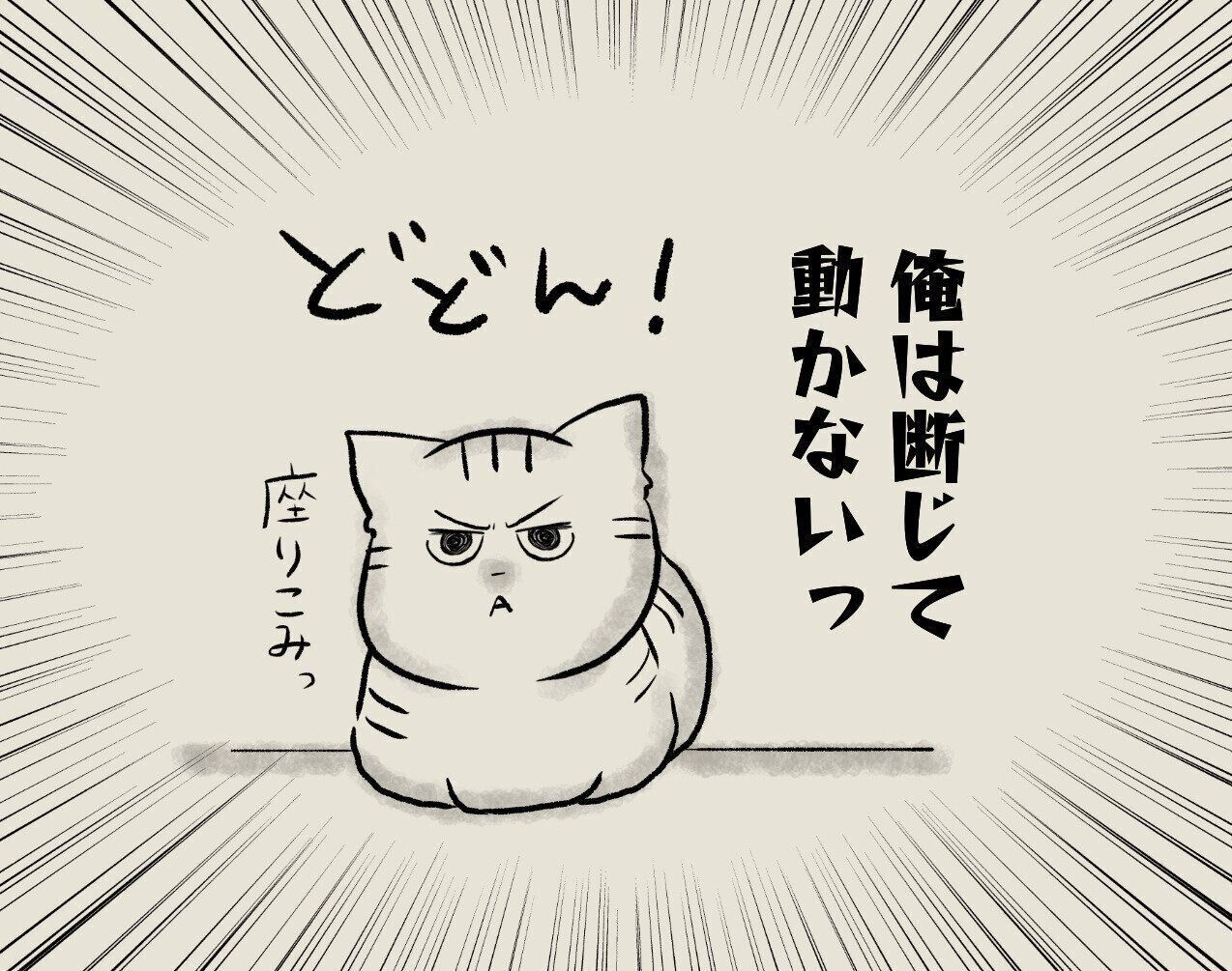 たとえ音は聞こえづらくとも、迫りくる掃除機の気配は分かるだろうに、意地でも動こうとしないその強い意志。