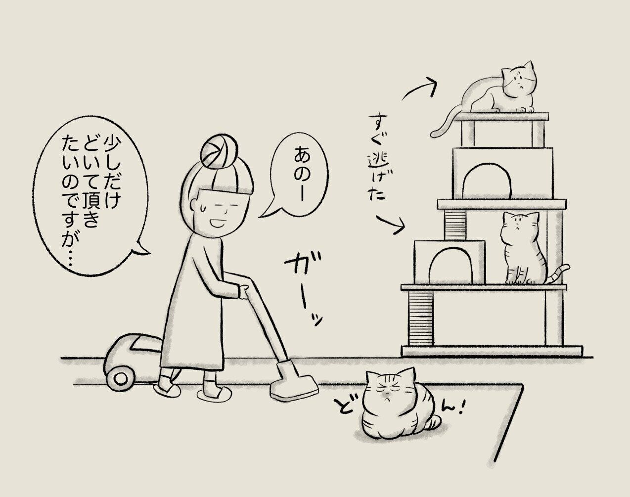 そして、大体の猫たちは私が掃除機をかけ始めると途端に逃げていきます。