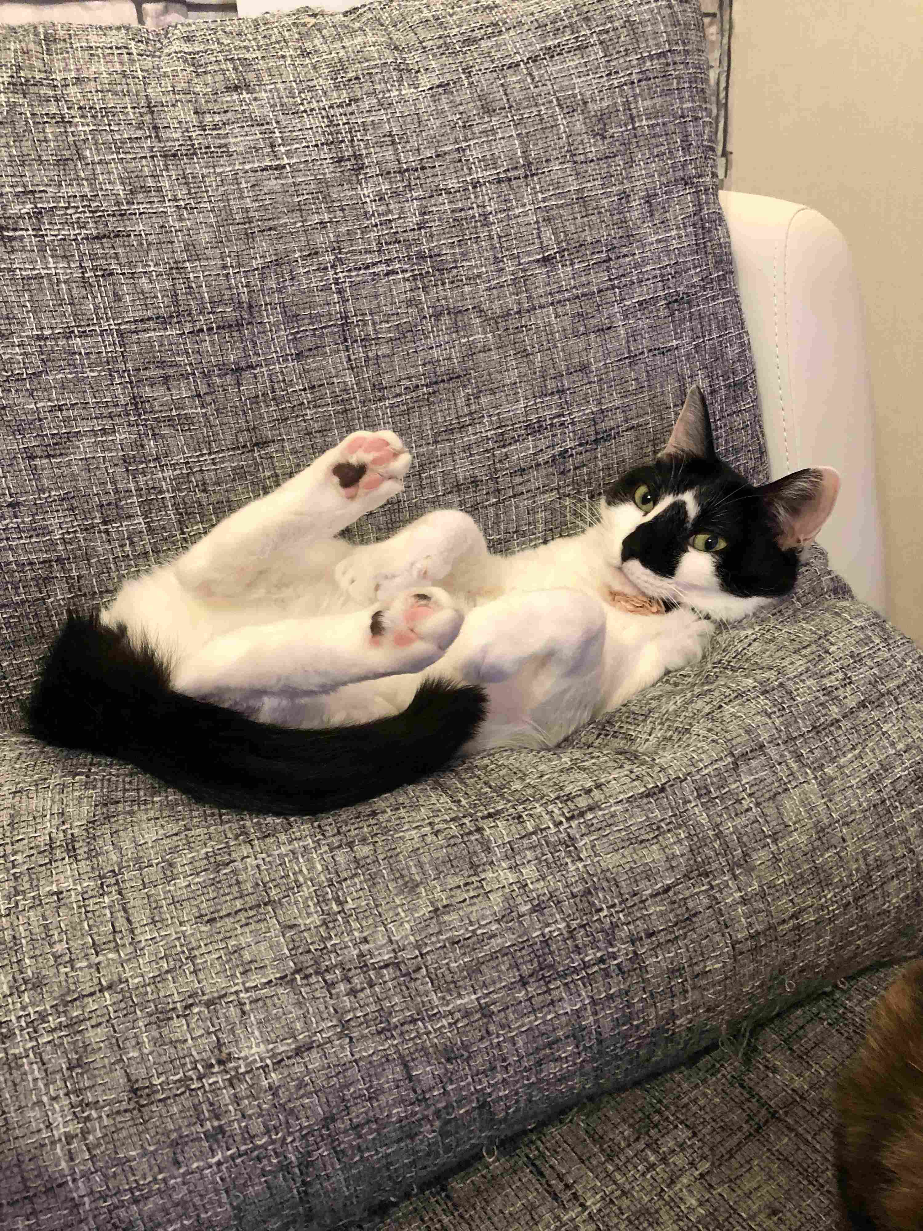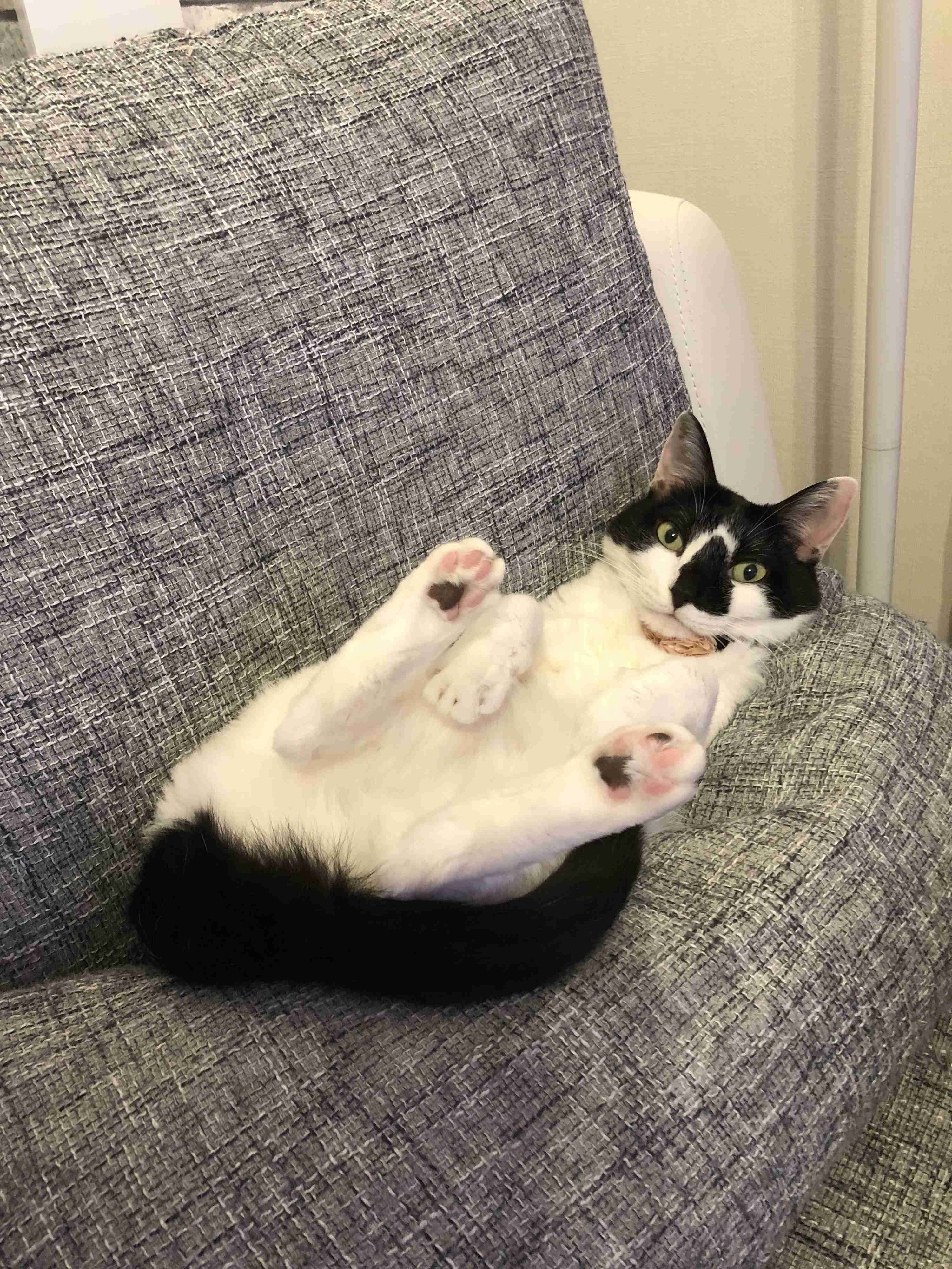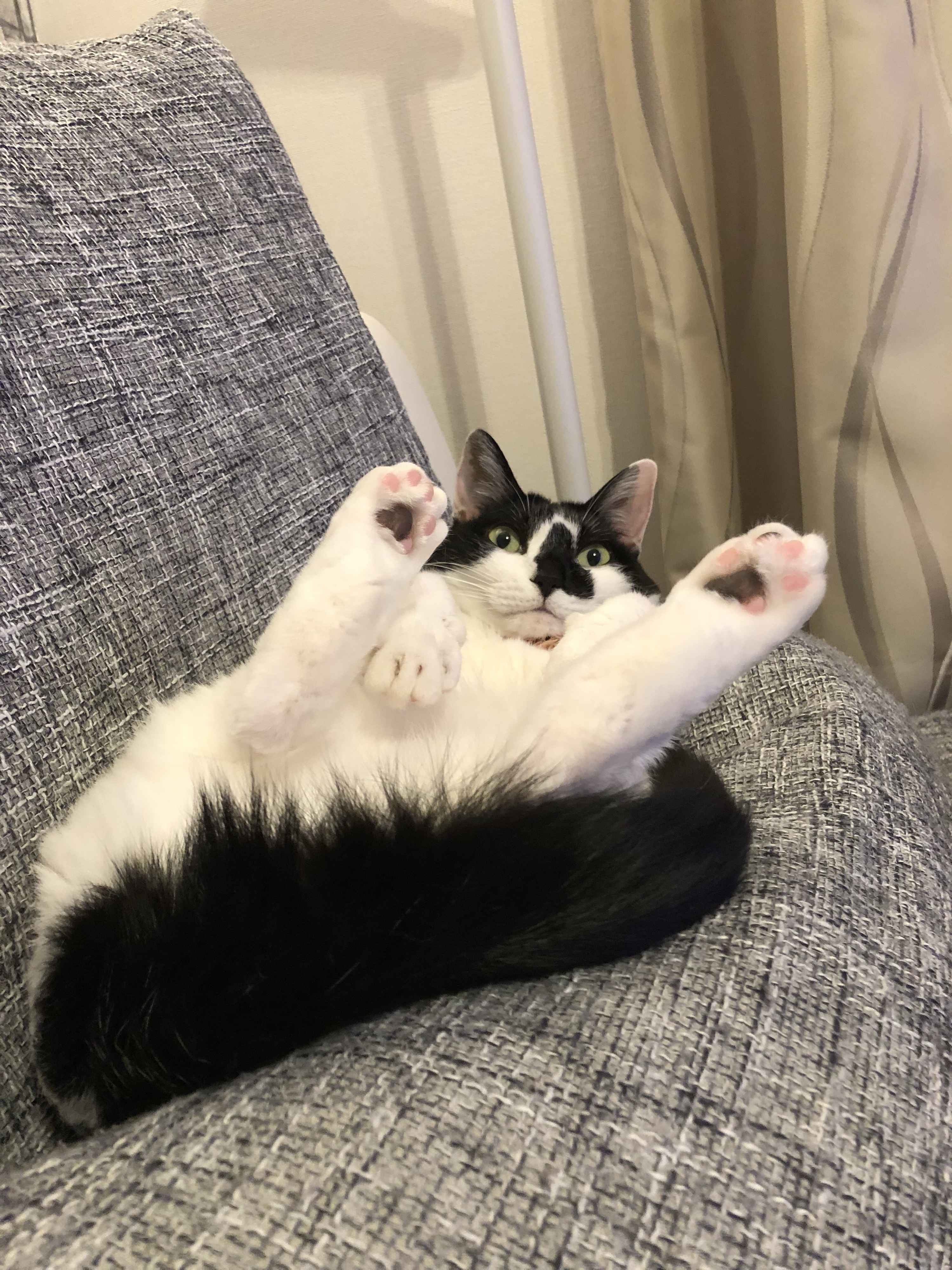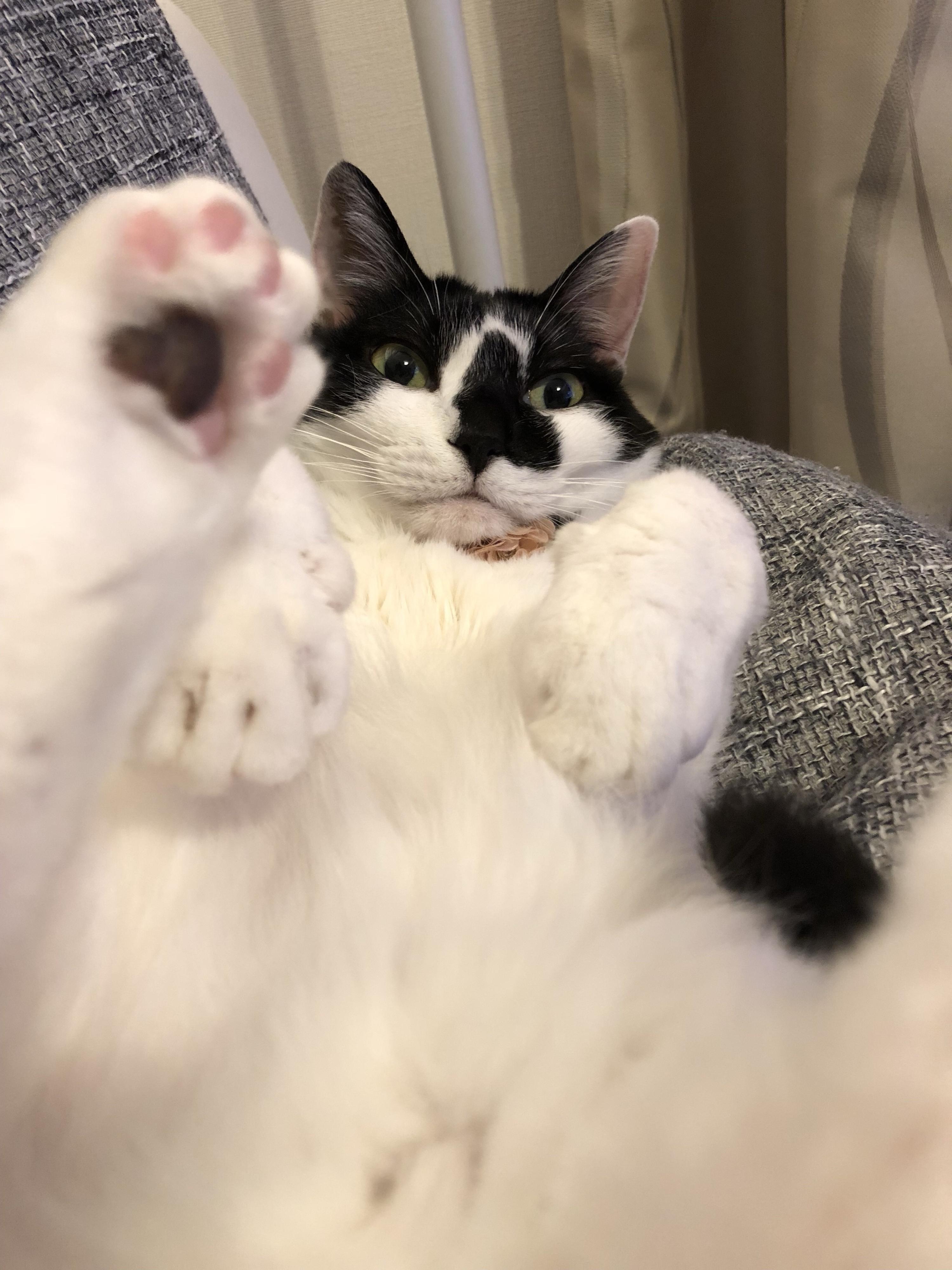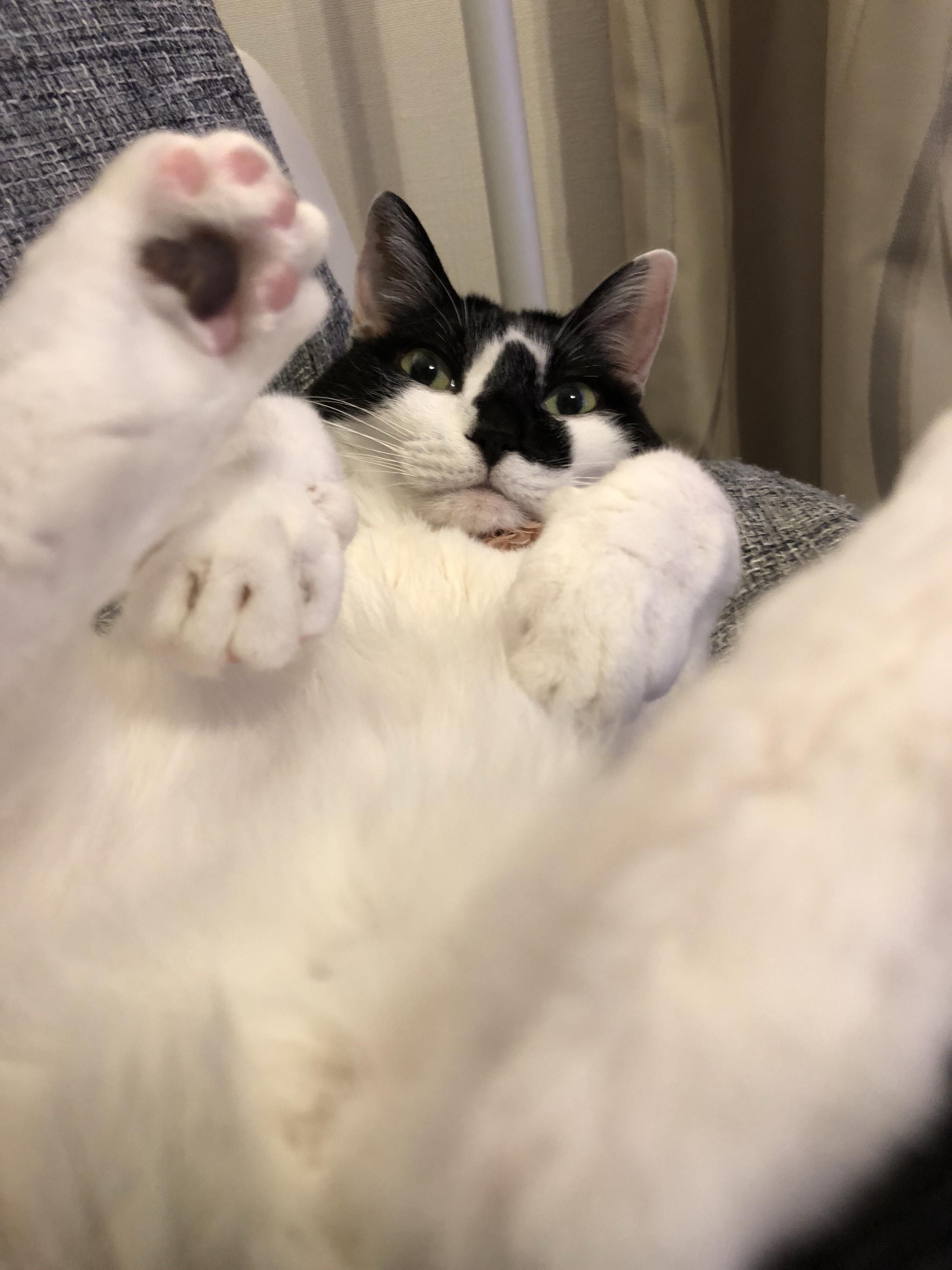先日家に帰宅すると、こんな体勢で迎えられました。