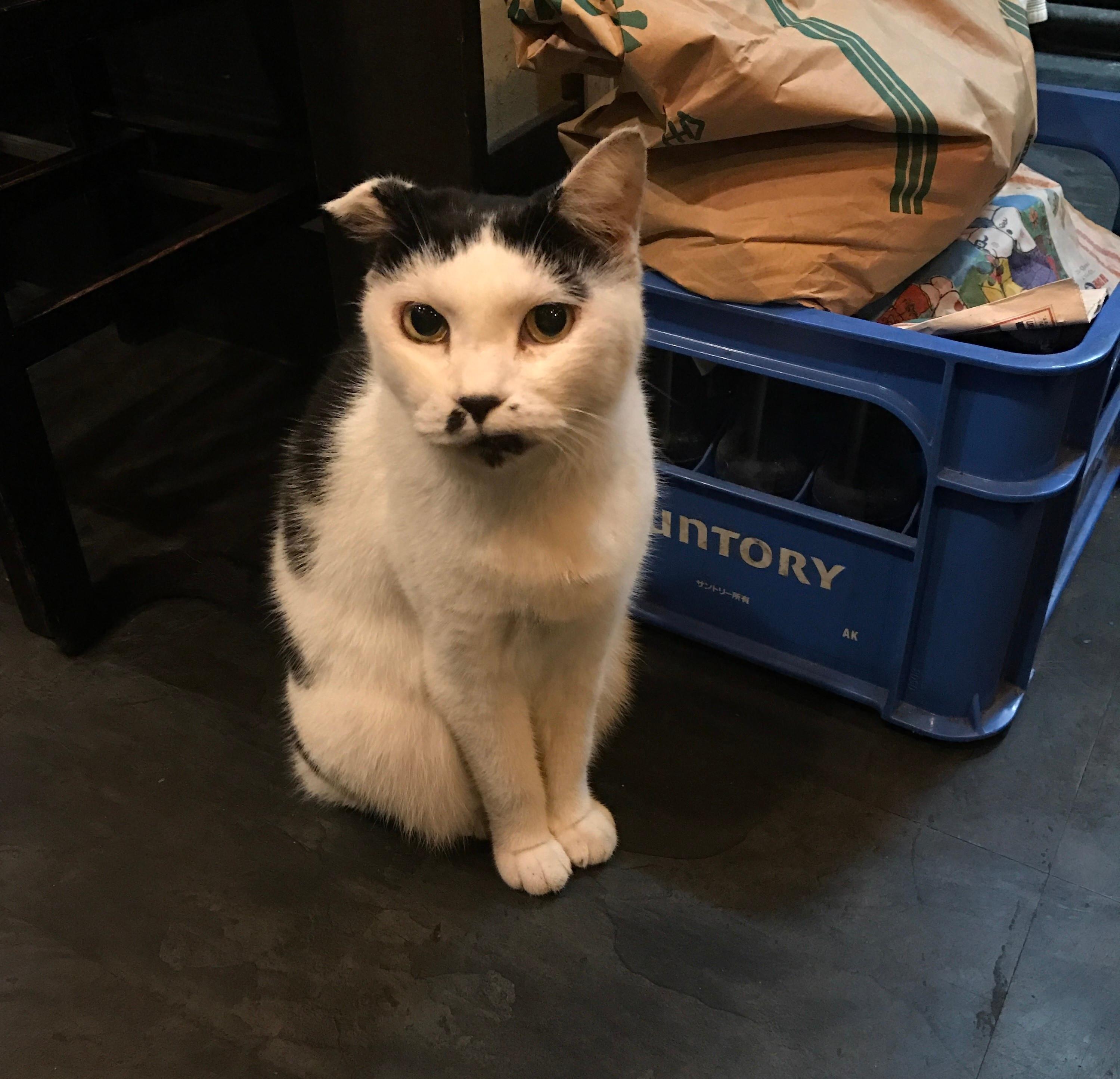 誰の猫なんだろう? 地域猫かな? 大島酒店さんに聞いてみました。