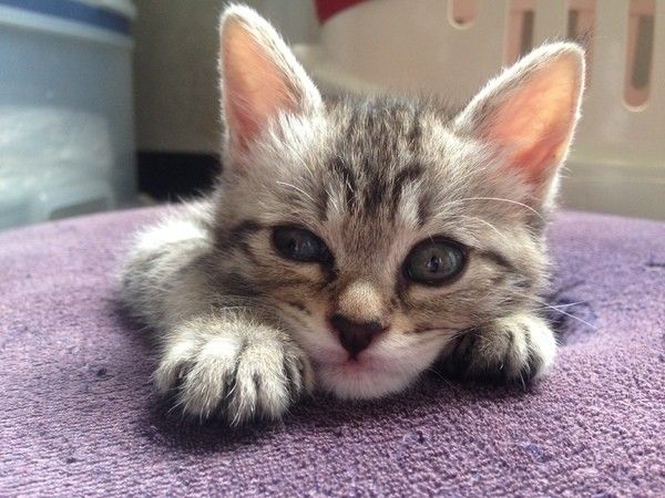 次はメスのサバトラの猫ちゃん。くりっとした目が眠そうに閉じかけているのがたまらない一枚です。この猫ちゃんが入っているのはなんとクッションの穴。お気に入りの場所でリラックスしているときの表情をおさめたベストショットです。