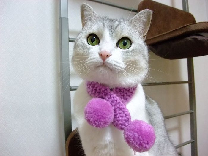 小さい頃から迷子防止用のネームタグを付けた首輪をしていたからでしょうか、うにもてんちゃんも首周りに何かを装着するのには、かな~り寛容でして。