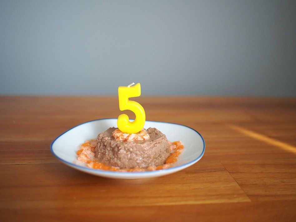 と言っても、毎年ウェットフードをケーキに見立てるくらいなのですが