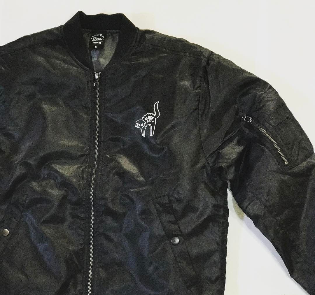 肌寒い日に着るブルゾンは、胸元にさりげなく猫ちゃんを