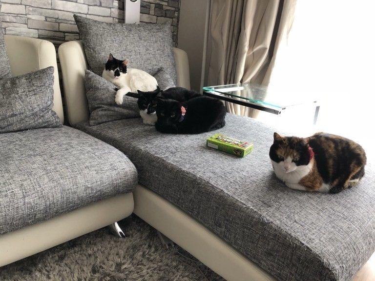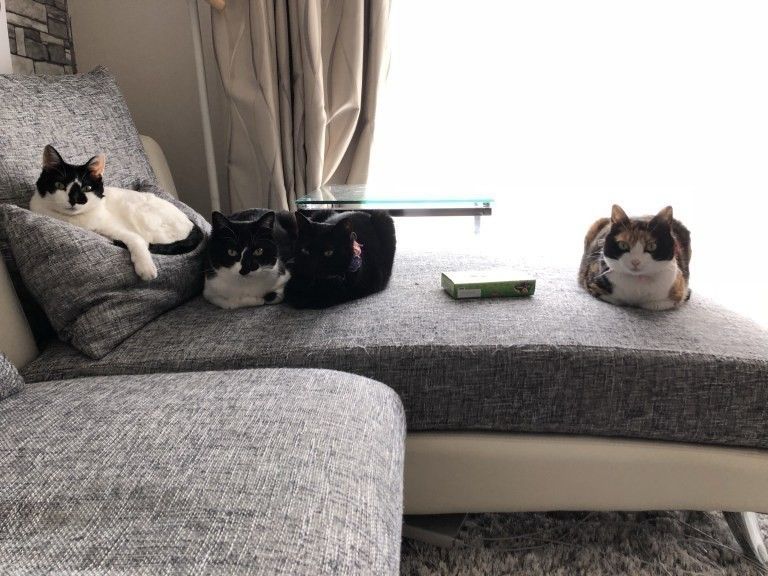 いつもの猫たちのいるリビング…今日も5匹仲良く…