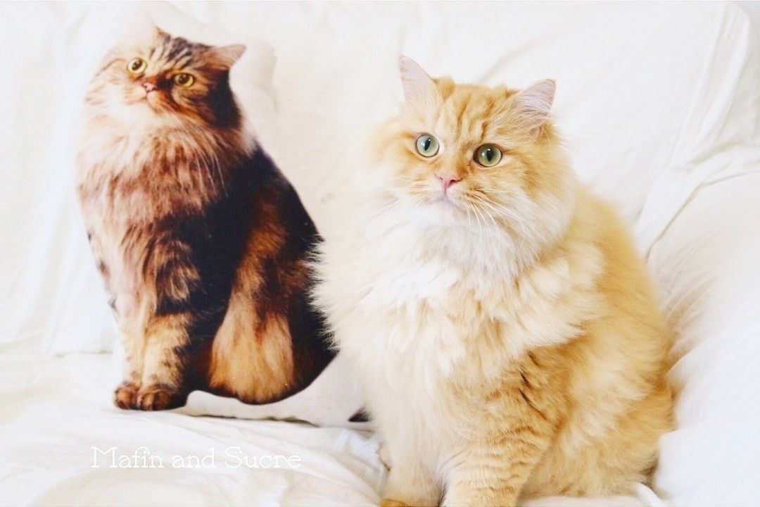 悲しいけれど、生き物には死は必ず訪れます。大事な愛猫そっくりのクッションで、寂しさを癒してみるのも良いかもしれません。こちらのクッションは、お兄ちゃん猫のマフィンくん。クッションがあれば、いつも一緒にいられますね。