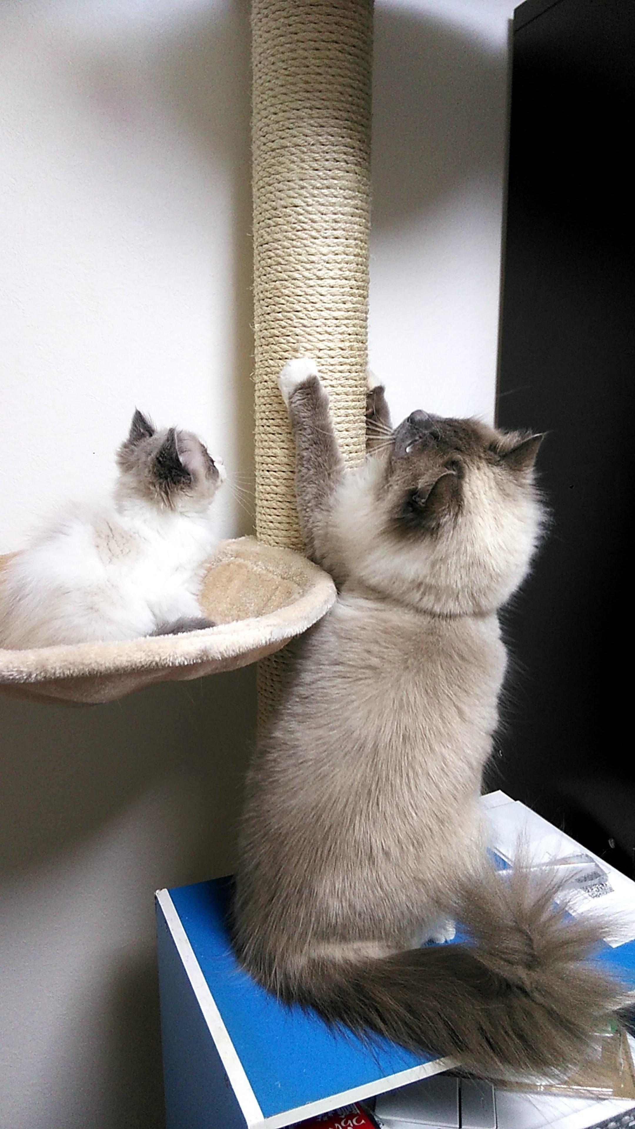 「うっかり壁で伸びをしたついでにガリッてやりそうになるのですが、そこはダメよーと優しく言っただけで、すぐに止めて猫タワーの爪とぎへ行ってくれます」。