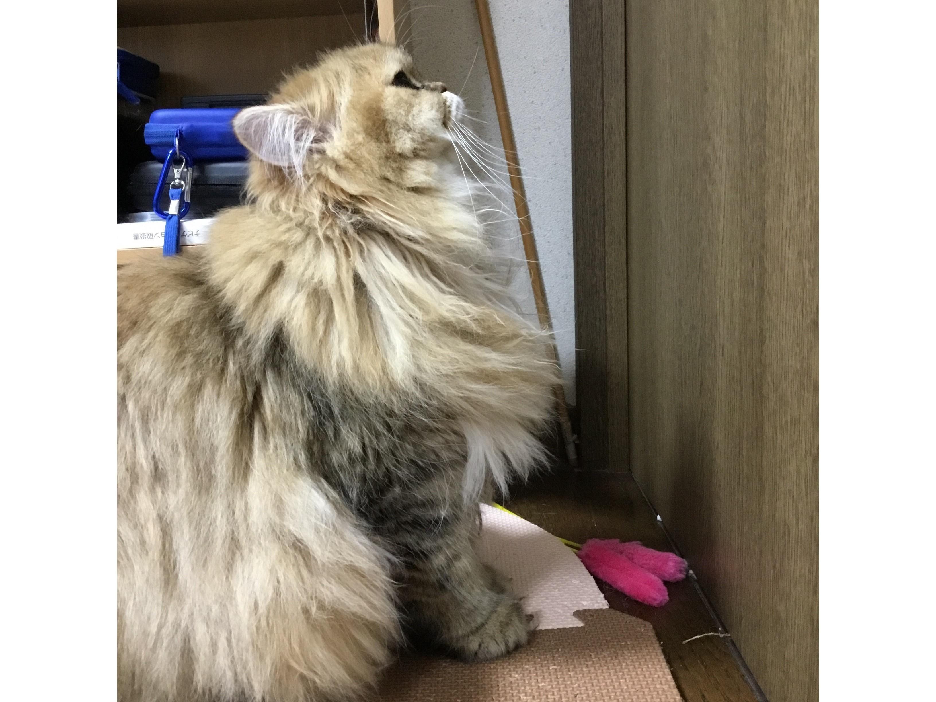 「人懐っこさは犬みたいですが、犬のようにガツガツせずにどんっと構えていて、大きくしっぽをパタパタ動かします。表情はあまり変わらず、動きもせず、ほとんどしっぽの動きだけで感情を表すような猫。おもちゃの遊び方もぐでーっとしていて、前足の先でボールをちょこちょこするくらいです」。