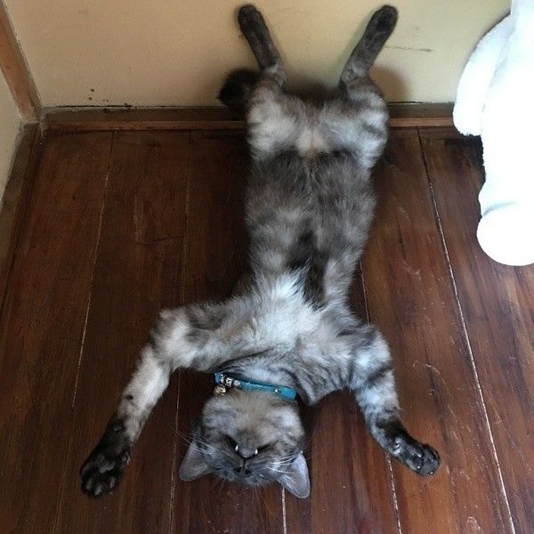 ただ伸びるだけではなく、伸ばした状態でうつ伏せになるのも、猫が夏になるとよくするポーズです。これは、ひんやりした地面などに、お腹だけでなく足までのばして「とにかくダイレクトに冷たさを味わう」ための方法です。