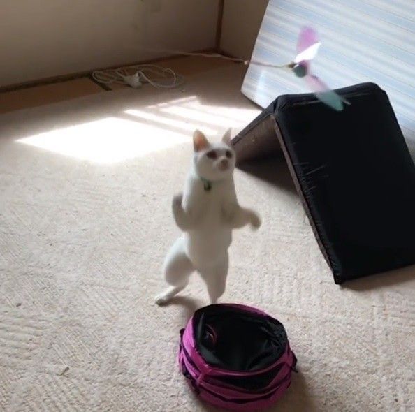 なんてしなやか!?おもちゃのトンボをキャッチする猫のスロー動画が面白い