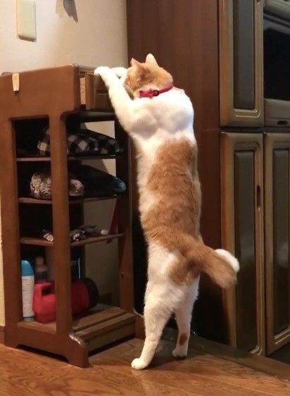 引き出しを開けようとする猫ちゃんがすごい。