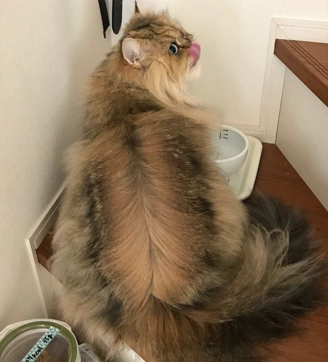 後ろ姿をじっくり観察する最大の機会は、愛猫のもぐもぐタイムです!多くの猫ちゃんはご飯を目の前にすると夢中になって食べるので、後ろ姿を愛でる絶好のチャンスなんです♡