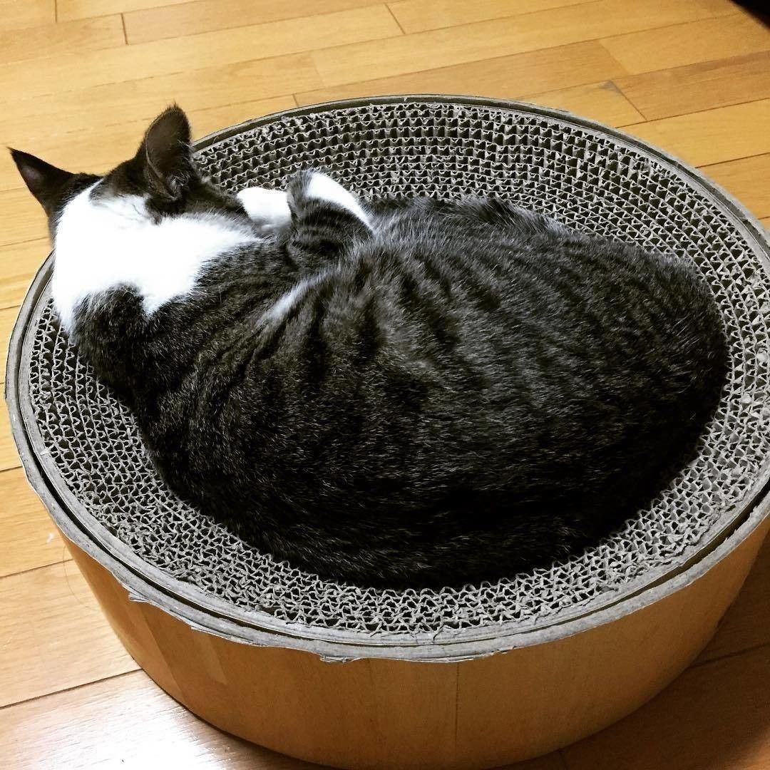 爪とぎサークルに座ってのんびりしているすずめちゃんです♪すずめちゃんのために作られた!?と思ってしまうくらい、ジャストフィット!後ろ姿からでも、リラックスしているのが伝わりますね♡