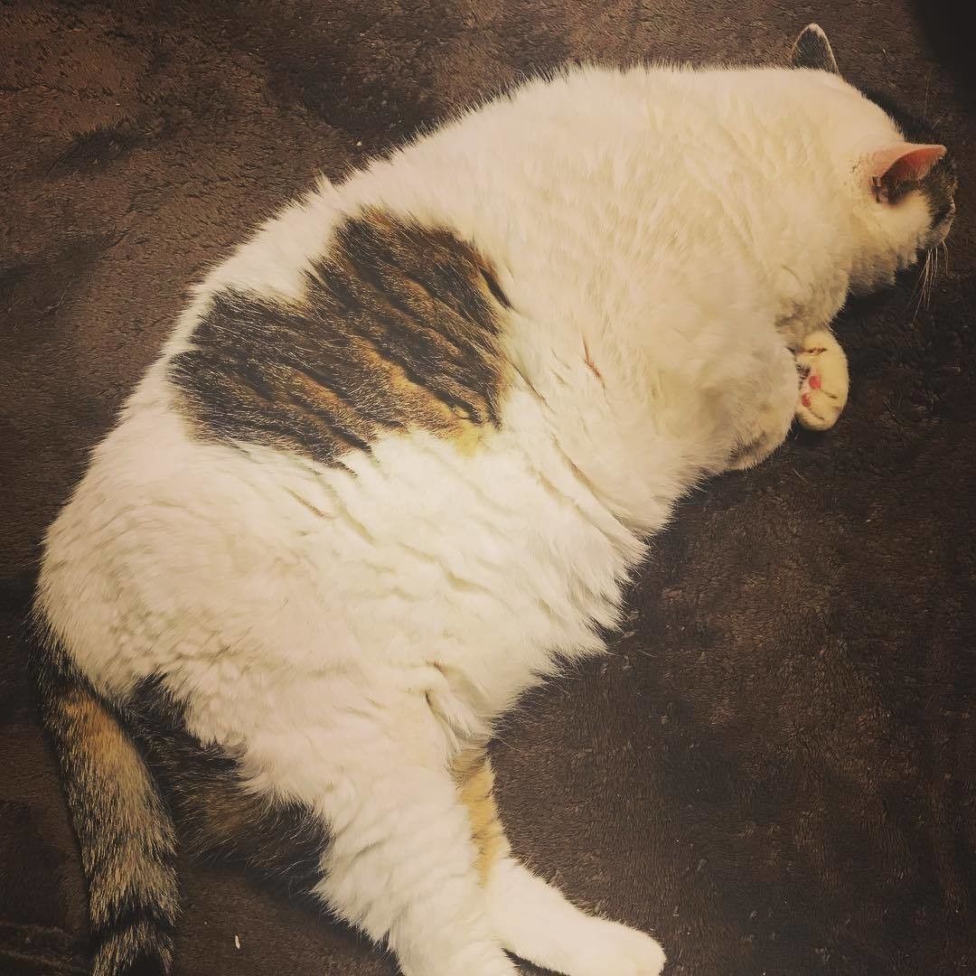2匹で寄り添って寝ているのは、天の助くんとウシちゃん。もちろん、牛柄の猫ちゃんの名前が「ウシ」ちゃんですよ♪写真が撮影された日は寒かったようで、2匹で暖をとりながら寝落ちしてしまった…というところでしょうか?それにしても、2匹がぎゅっとしている姿は可愛らしいですね♡