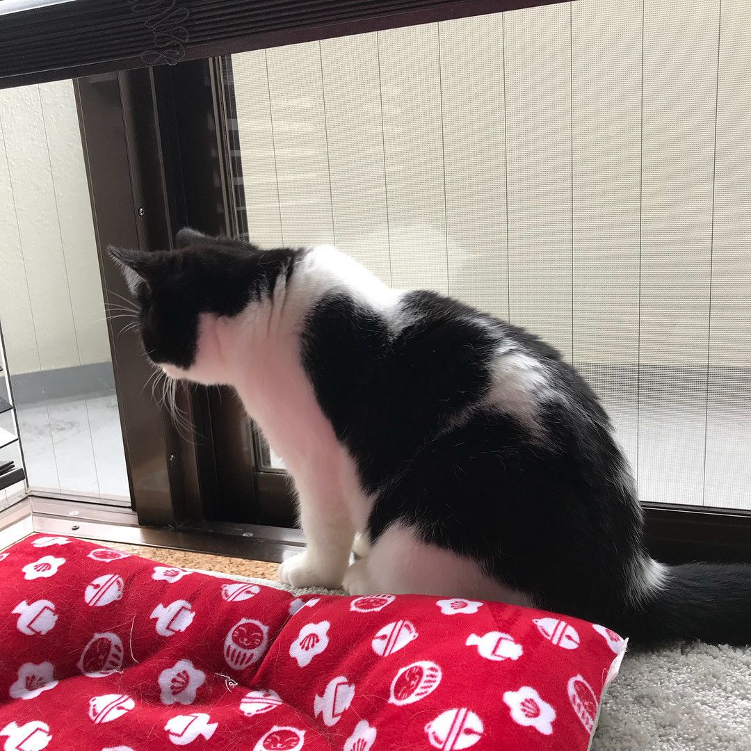 のんびりと机に座って外を眺めているのは、エキゾチックショートヘアの麦ちゃんです♡リラックスして外を眺めていますが、この写真が投稿された8月1日は東京で35度が記録された猛暑日!外は灼熱の暑さだったんです…!