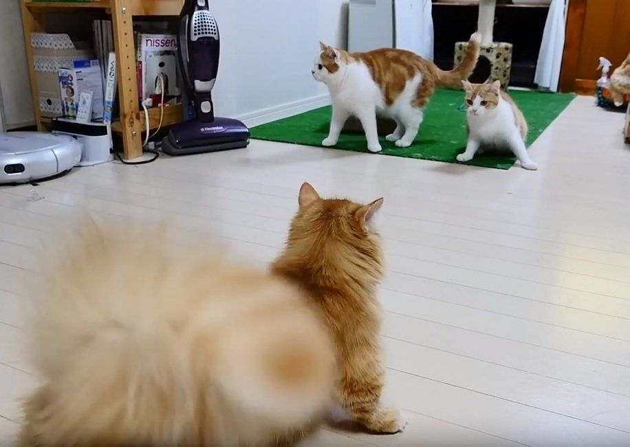 ポインタ目掛け、もの凄い勢いで猫たちが全力疾走し始めました!