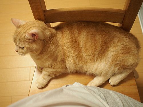 椅子に座っていると、背もたれの隙間にいつの間にか居座るぷーちゃん。
