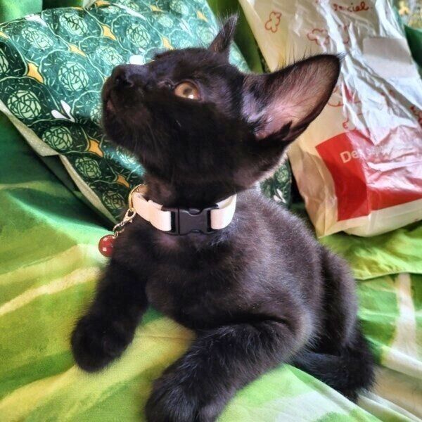 お迎え当初は、新しい環境に緊張していた保護子猫・くろみつくん。2カ月後には飼い主さんの太ももの横でくつろぐ甘えん坊に。5才になった今は「腕枕にどハマり」した姿を紹介します。