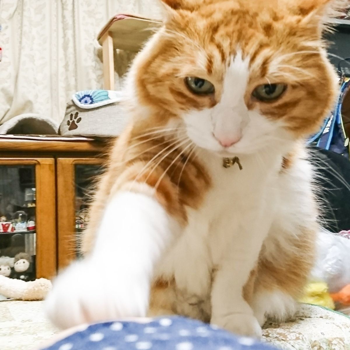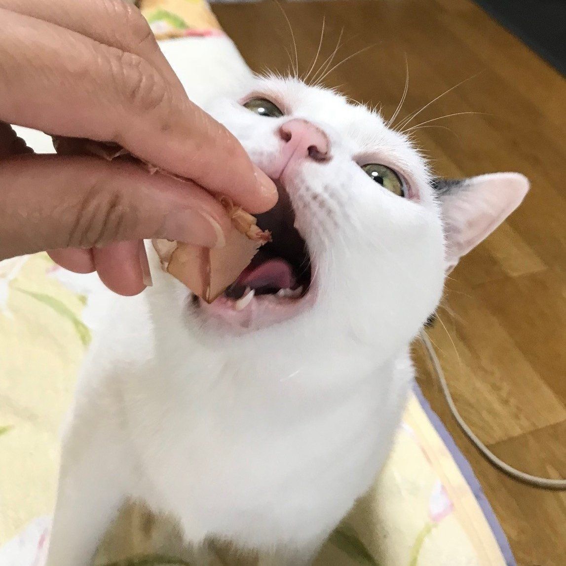 おやつを見せると、「こっちにちょ~だい!」とでもいいたいのか、