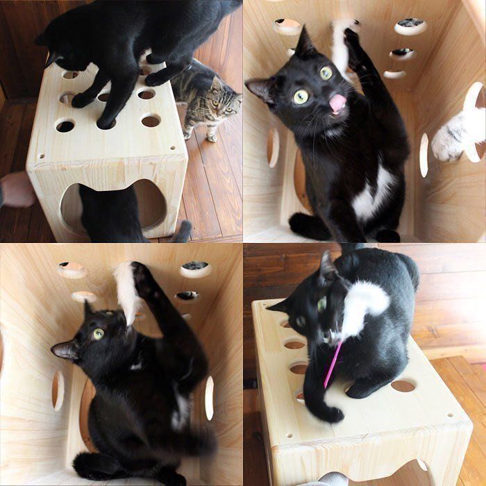 猫型の入り口に入っていくお尻や、小窓からのぞかせる顔、ときには穴から飛び出す前足など、猫のかわいらしさを存分に味わえる仕様になっています。