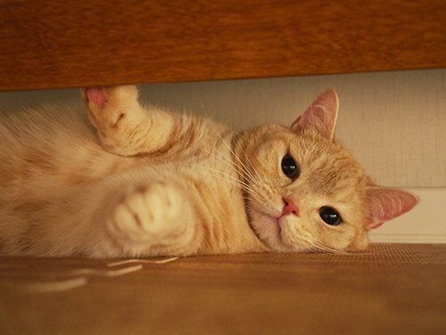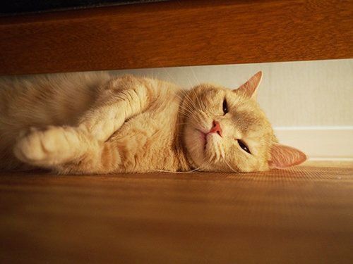 バッグを見た瞬間に一瞬でベッドの下(捕まえられない場所)に逃げるぷーちゃん。