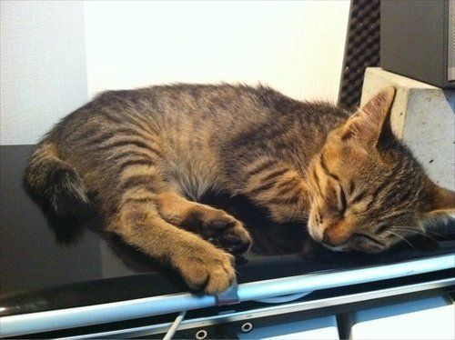 妊娠前のコマは、毎朝窓のサッシから奥さんのお腹めがけてジャンプしてたんですね。