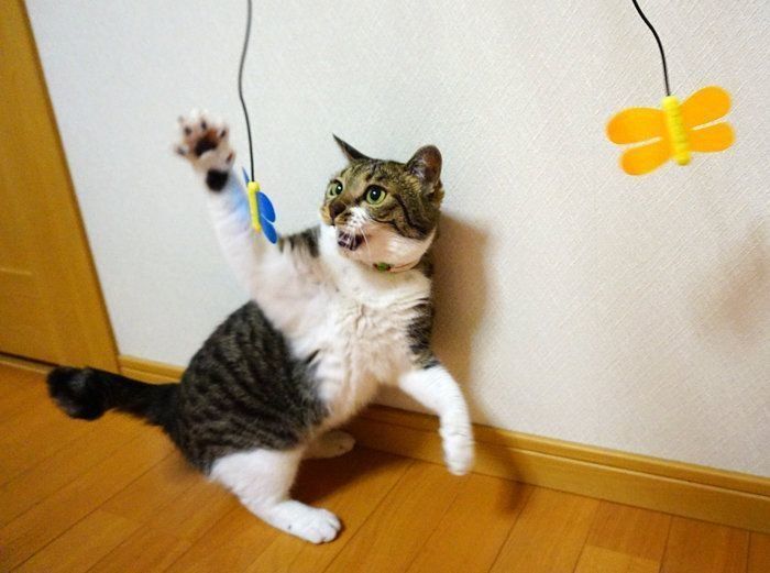 キラキラ素材のとんぼくんが付いた釣り竿型のこのおもちゃ。以前本誌の付録だったこともあるんですけど、そのときも猫さんたちに大人気だったらしいです(・∀・)b