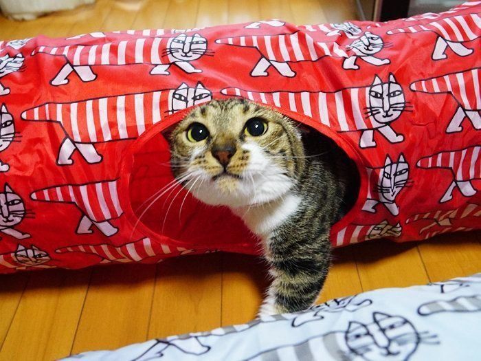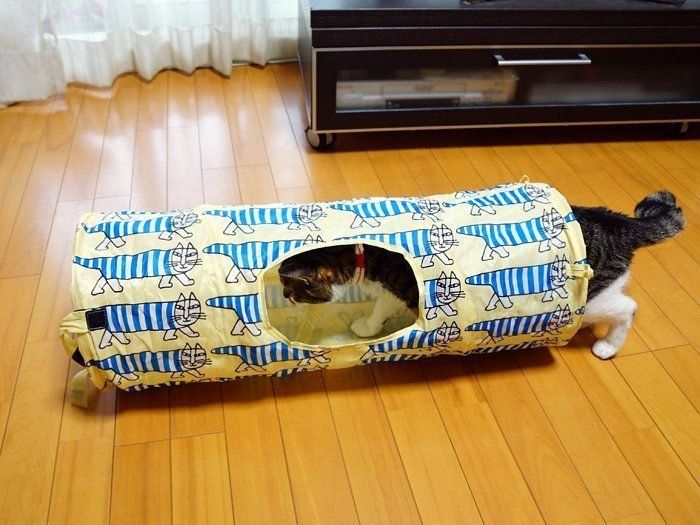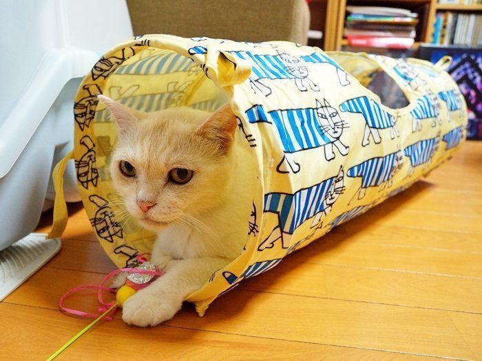 大きな猫用アスレチックが作れても、片付けるときはこんなにコンパクトになるというのも、トンネルおもちゃの魅力ですよね♪