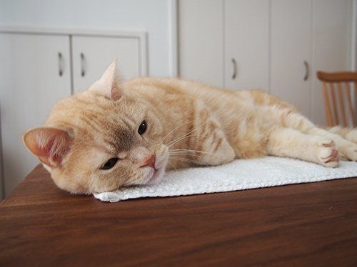 つい最近まではテーブルの上に置いた「ぷーちゃんホイホイ(タオル)」で