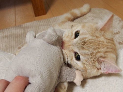 ぷーちゃんとIKEAのネズミのぬいぐるみ 【マンチカンのぷーちゃん】vol.53
